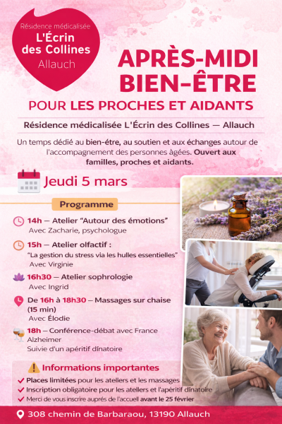 Organisation de l’après-midi bien-être du 5 mars — Résidence L’Écrin des Collines