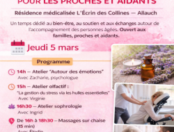 Parce qu’accompagner un proche peut parfois être exigeant et qu’il est essentiel de prendre soin de soi aussi, la Résidence médicalisée L’Écrin des Collines est heureuse de vous proposer un moment spécialement pensé pour vous.