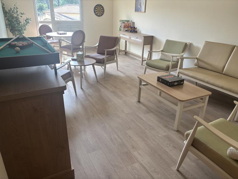 Le salon des Lavandes, situé au rez-de-chaussée à proximité de la salle d’activités, a été réaménagé pour devenir un espace dédié aux jeux de société et à la convivialité.