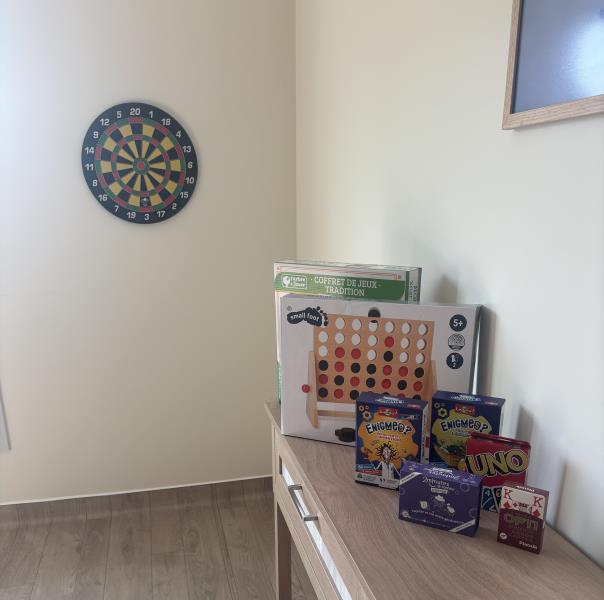 Des jeux de société variés, et même un jeu de fléchettes sont à disposition pour tous les âges et toutes les envies.