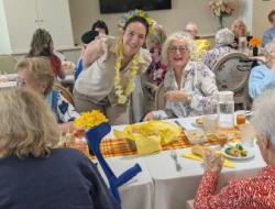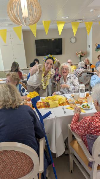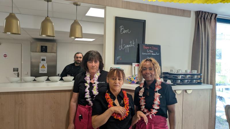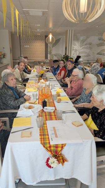 Le déjeuner a fait voyager les papilles avec un menu typiquement mauricien : samoussas, bonbons piment, rougail saucisse, accompagnés d’un punch et d’un délicieux dessert à la coco. Un grand merci à Dana, aide-soignante d’origine mauricienne, qui a préparé elle-même l’entrée avec l’aide de Diego, notre chef cuisinier.