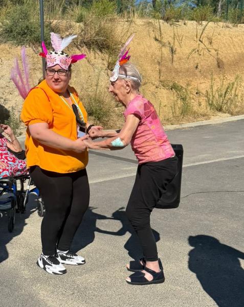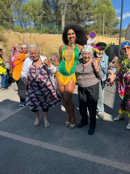 L’après-midi, la fête s’est poursuivie avec l’arrivée d’une danseuse venue se produire devant l’établissement. Au rythme entraînant de la musique brésilienne, elle a offert un spectacle haut en énergie et en bonne humeur. Installés confortablement, les résidents ont assisté à cette animation originale, sourires aux lèvres et parfois en tapant des mains pour accompagner la cadence.