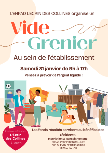L’EHPAD organise un vide-grenier solidaire le samedi 31 janvier, de 9h à 17h.